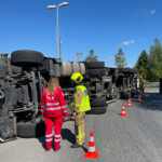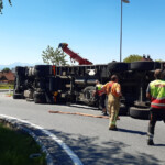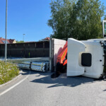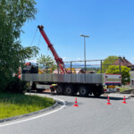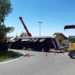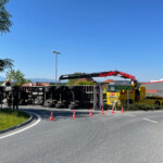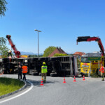 Heute Vormittag kippte im Kreisverkehr in Lamprechtshausen gegen 10:00 ein Sattelzug um.