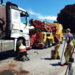 Die Bergungsarbeiten des Schwerfahrzeugs wurden durch die Fa. Eberl durchgeführt, welche mit drei Fahrzeugen vor Ort war. Zunächst wurden die Metallteile per Kran abgeladen. Im Anschluss wurde der umgestürzte Sattelzug mittels Seilwinden wieder aufgerichtet. Bei dem Unfall traten auch größere Öl- und Dieselmengen aus, welche gebunden werden mussten.
