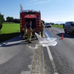 Aufgrund eines technischen Defekts verlor am 14.09.21 ein PKW im Bereich der südlichen Ortseinfahrt an der B156 eine größere Menge Diesel. Der Treibstoff wurde von den Einsatzkräften gebunden und der betroffene Bereich vor bzw. um das defekte Fahrzeug gereinigt. Im Einsatz waren 6 Mann mit zwei Fahrzeugen.