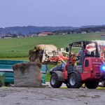 Durch die Unterstützung von Hofladern und Kippern wurden die Heuballen auf eine Wiese transportiert, teilweise geöffnet und abgelöscht.